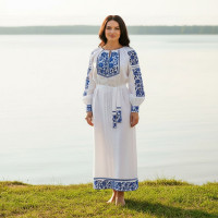 Блуза выполнена из белого шифона. Пышный рукав, по запястью  волан.  Декор золотистого или серебристого цвета.
