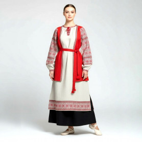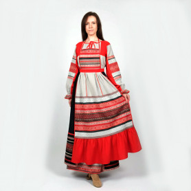 Сарафан с блузой «Дарина» выполнен в красном цвете в традиционном русском стиле. Плотный матовый габардин не мнется, не блестит под софитами.