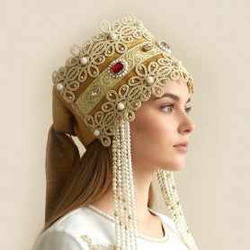Кокошник Ася - лаконичный по форме, из декора использована только тесьма, но очень выразительная и красочная.  Высота кокошника 11 см.  Кокошник отлично подойдет к наряду из хлопка, льна, атласа.