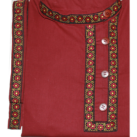 Косоворотка Оберег - сшита с учетом русских традиций (свободный силуэт, который не ограничивает движений; застежка сбоку, со стороны сердца; декор-оберег по горловине, груди, запястьям, поясу, бедрам, подмышечные полики, пояс-кушак). Ткань косоворотки - мягкий, плотный, дышащий небеленый лен светло-серого цвета. Декор благородного синего цвета с символами древне-славянских божеств. Такая косоворотка - ценный подарок для мальчика, мужчины к важным датам. Оберег - прекрасный вариант для детских праздников в школе и детском саду, театральных выступлений, православных мероприятий, для домашнего использования.