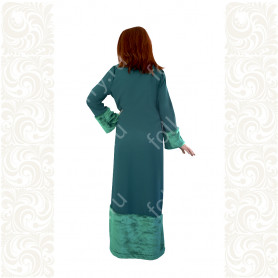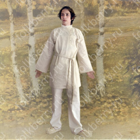 Традиционная женская рубаха из небеленого льна известна с дохристианских времен. С тех незапамятных и мудрых времен ее надевали женщины и девушки под сарафан, под фартук, под юбку-поневу, или носили отдельно. Актуальна она и сегодня. Рубаха "Ясногорье" будет органично смотреться как на традиционных славянских мероприятиях, так и в повседневной жизни. Комфортная, выполненная из умягченного льна, украшенная жаккардовой тесьмой с узорами в славянском стиле, дополненная широким поясом, рубаха поможет создать аутентичный образ. Длинная,  слегка расклешенная, по бокам разрезы, под мышками полики. Интересно то, что декор, которым украшена рубаха историчен - он был известен еще в 17 веке и восстановлен на современном ткацком оборудовании.