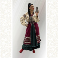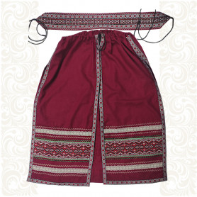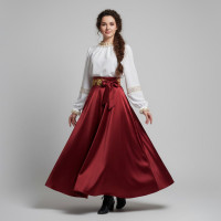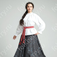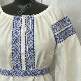Эта традиционная женская рубаха ( длинная туника с поликами под мышками, с разрезами по бокам, с поясом) из белого льна декорирована по низу рукава, подолу и на груди широкой жаккардовой тесьмой со славянскими обережными символами красного цвета на белом фоне.
