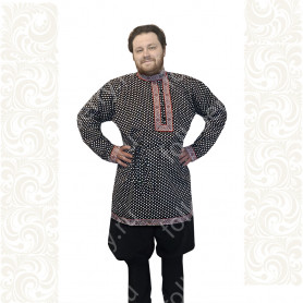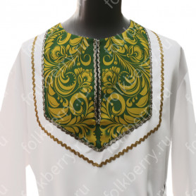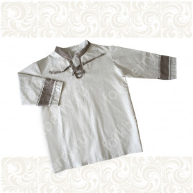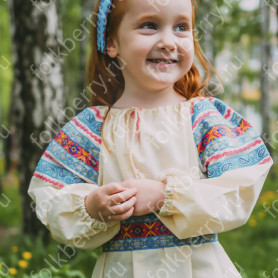 Блуза может быть выполнена из белого атласа (более праздничный вариант) или из хлопка. Пышный рукав по запястью присборен резинкой и имеет декоративный манжет из жаккардовой тесьмы.