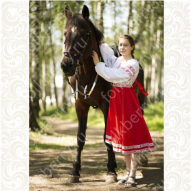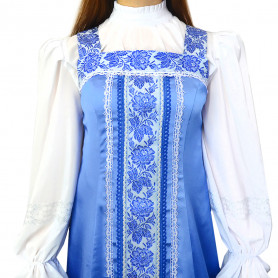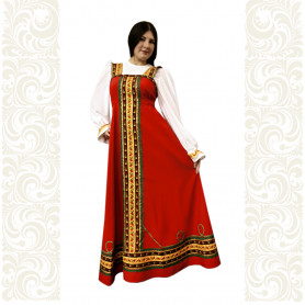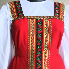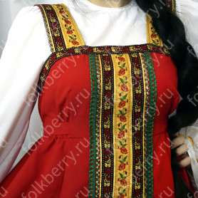 Сарафан из габардина с блузой «Красна девица» – яркая стильная модель, выполненная в народном стиле. Изделие отлично сядет по фигуре и подчеркнет природную красоту девушки.
