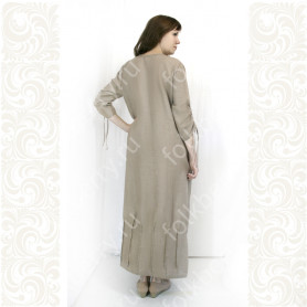 Сарафан сшит из габардина. Ткань не мнется, красивыми складками ложится в изделии. Не блестит при искусственном освещении.
